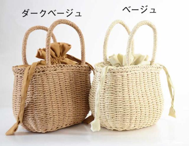 かごバッグ 浴衣 夏バッグ レディース トートバッグ ハンドバッグ バスケット 巾着付き ナチュラル 大容量 手提げバッグ かご編みバッグ 軽量 可愛い お花見 水着 浴衣 籠バッグ リゾート 旅行