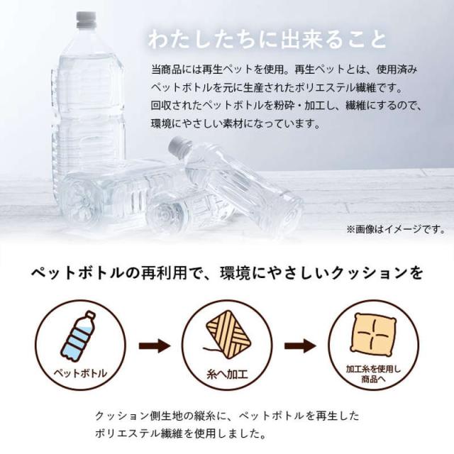 ●縦糸にはペットボトルを再生したポリエステル繊維を使用した環境にやさしいクッションです。