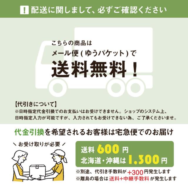 | ネコポス便 | 【別途送料】 ・送料300円別途頂きます。 ・離島の場合は別途中継料を頂きます。 ・代金引換は承っておりません。 |