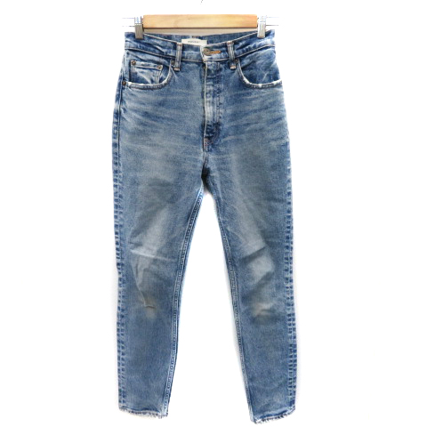 【中古】マウジー デニムパンツ ジーンズ テーパードパンツ アンクル丈 ウォッシュ加工 24 ライトブルー レディース