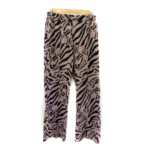 【中古】リビーアンドローズ フレアパンツ イージーパンツ ロング丈 ゼブラ柄 スリット F 紫 ベージュ 黒 レディース