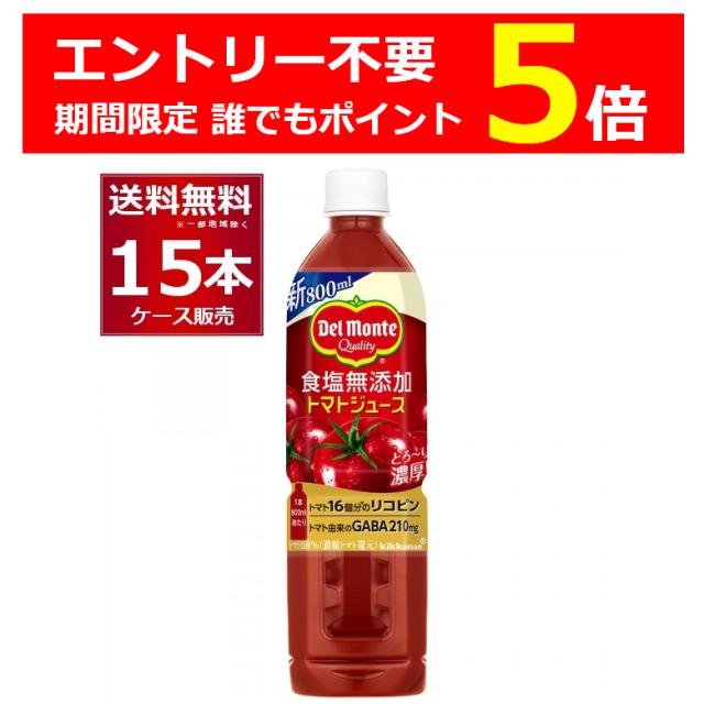 エントリー不要 誰でもP2倍 3/11 9:59までデルモンテ 食塩無添加 トマトジュース 800g×15本(1ケース) [送料無料※一部地域は除く]