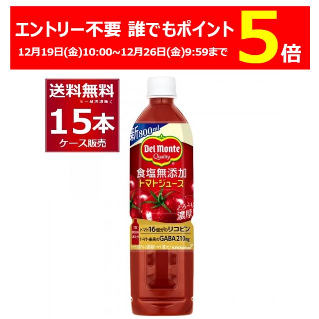 エントリー不要 誰でもP5倍 12/26 9:59までデルモンテ 食塩無添加 トマトジュース 800g×15本(1ケース) [送料無料※一部地域は除く]