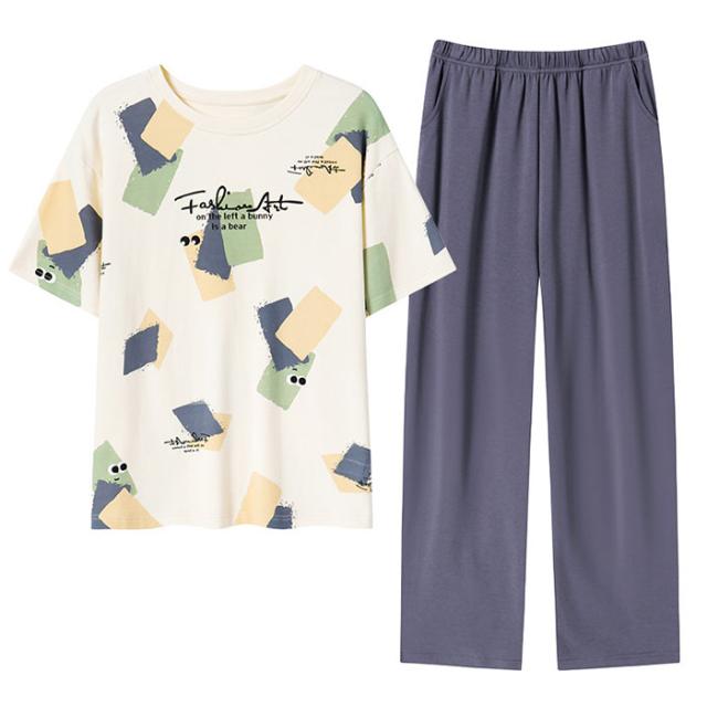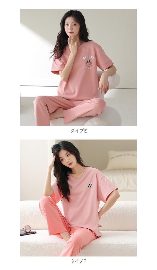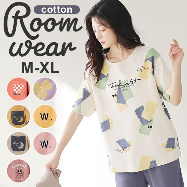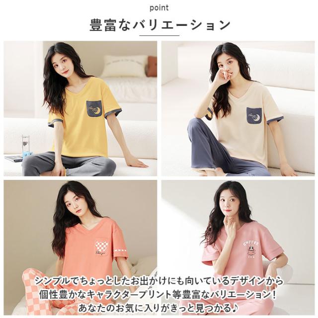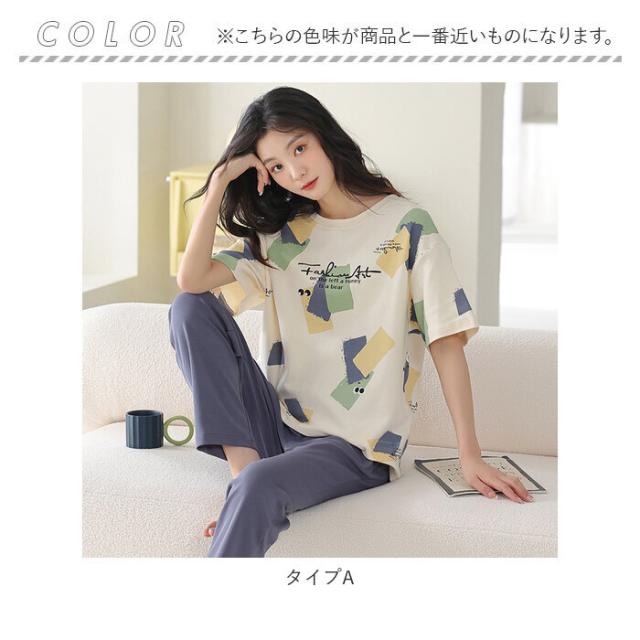 ルームウェア レディース 夏 通販 パジャマ 上下 セット クロップドパンツ ズボン 半袖 Tシャツ 部屋着 寝巻き ナイトウェア 綿 コットン 通気性 薄手 柔らかい 旅行 お出かけ