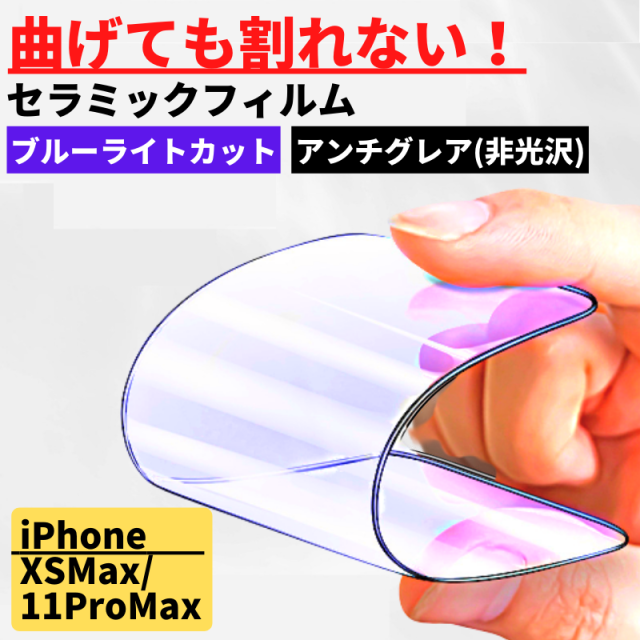 iPhone XSMax 11ProMax セラミック ブルーライトカット アンチグレア フィルム 割れない 非光沢 サラサラ 反射防止 マット 指紋防止 硬度9H 全面保護 フルカバー のぞき見防止 iphone アイフォン Xs Max 11 Pro Max ProMax