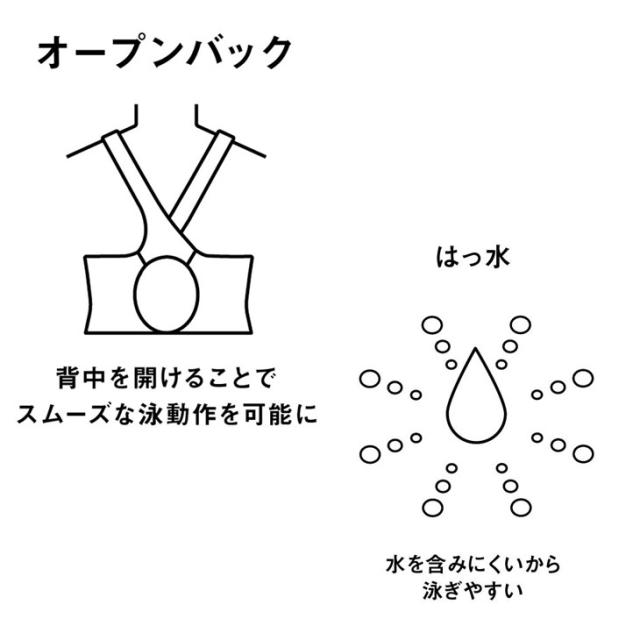 安心感のある地厚な生地で塩素に強く長持ちし、はっ水加工でシャープな水切れが特徴です。