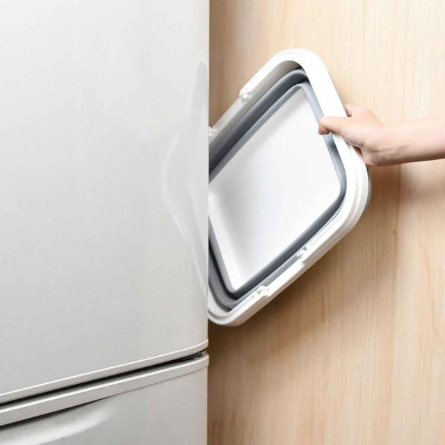 バスケットは折りたたむと高さ6.5cmになるので冷蔵庫脇などのちょっとしたすき間に収納することができます。