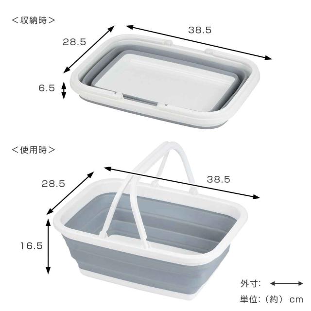 | サイズ | 使用時:約 幅38.5×奥行28.5×高さ16(cm) 収納時:約 幅38.5×奥行28.5×高さ6.5(cm) |