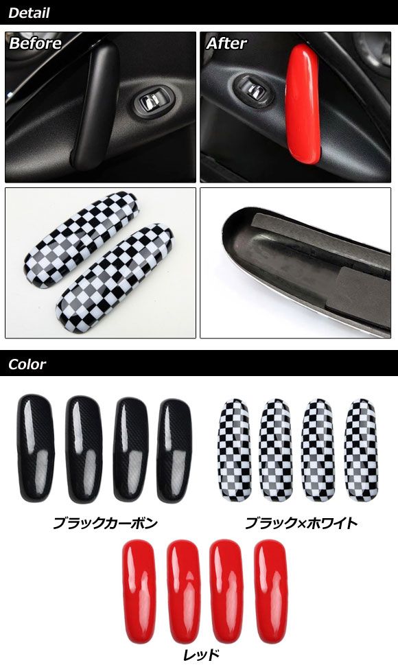 ドアグリップガーニッシュ MINI(BMW) R60 前期 2011年〜2014年 ブラックカーボン ABS製 入数:1セット(4個) AP-IT3058-BKC
