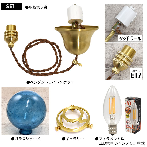 照明器具セット E17 シャンデリア電球 ダクトレール ガラスシェード付属 LEDランプ おしゃれ 照明 ペンダントライト 1灯 真鍮 天井照明 吊り下げ照明 レトロかわいい 器具 アンティーク調 スポットライト器具 電球用ソケット 裸電球 レトロ 高級感
