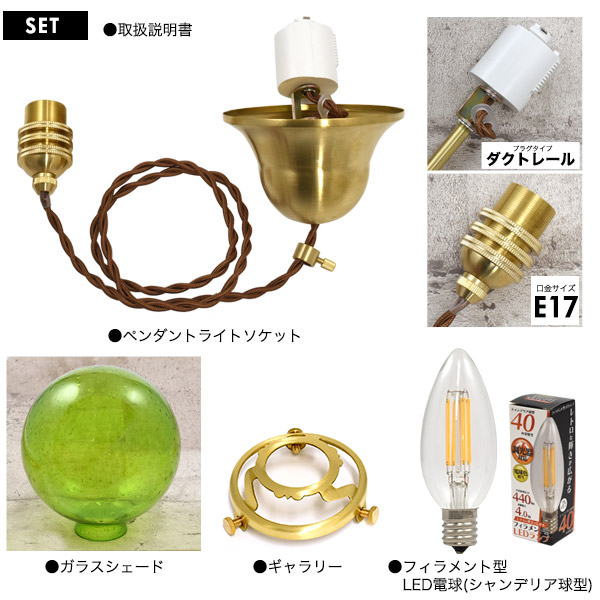 照明器具セット E17 シャンデリア電球 ダクトレール グリーン ガラスシェード付属 LEDランプ おしゃれ 照明 ペンダントライト 天井照明 吊り下げ照明 レトロかわいい 器具 アンティーク調 スポットライト器具 電球用ソケット 裸電球 レトロ 高級感 緑