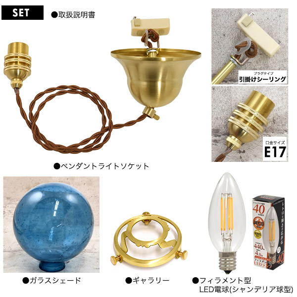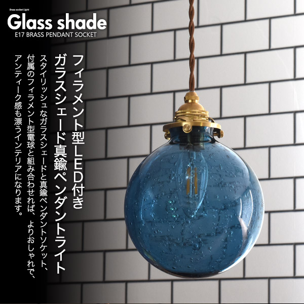 照明器具セット E17 シャンデリア電球 引掛けシーリング 丸型 気泡ガラスシェード付属 LEDランプ おしゃれ 照明 レトロ可愛い 天井照明 ペンダントライト 青 吊り下げ照明 レトロかわいい 器具 アンティーク調 スポットライト器具 電球用ソケット 裸電球 レトロ 高級感