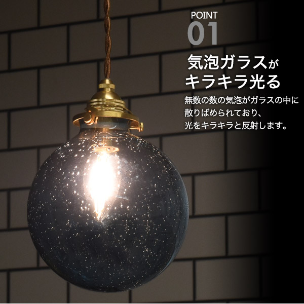 丸型気泡ガラスシェードLEDランプセット (E17・引掛けシーリングタイプ・100cm)