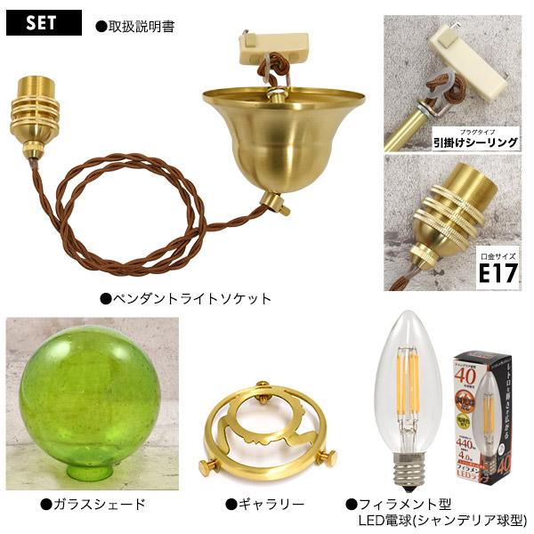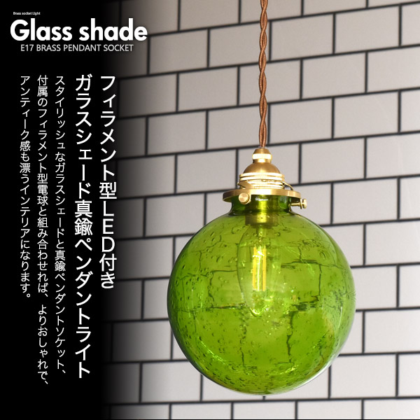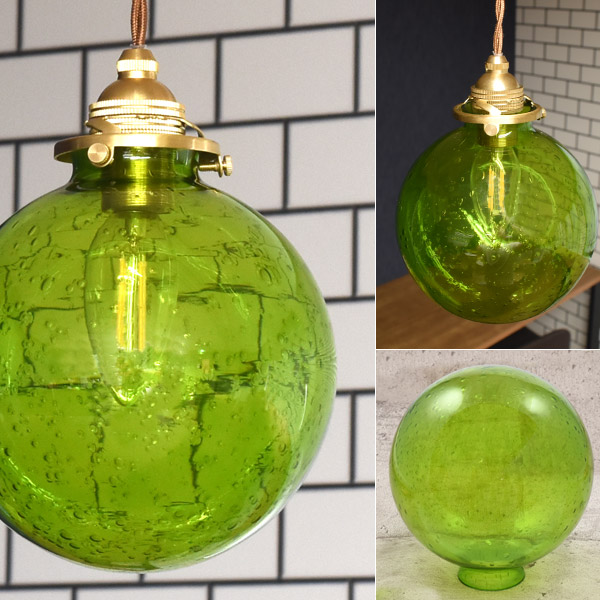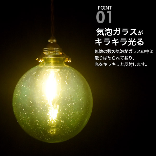 照明器具セット E17 シャンデリア電球 引掛けシーリング 丸型 気泡ガラスシェード付属 LEDランプ おしゃれ 照明 レトロ可愛い 天井照明 ペンダントライト 緑 吊り下げ照明 レトロかわいい 器具 アンティーク調 スポットライト器具 電球用ソケット 裸電球 レトロ 高級感