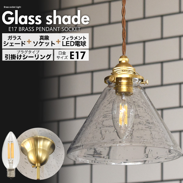 照明器具セット E17 シャンデリア電球 引掛けシーリング 透明 気泡ガラスシェード付属 LEDランプ おしゃれ 照明 天井照明 レトロ可愛い ペンダントライト 吊り下げ照明 レトロかわいい 器具 アンティーク調 スポットライト器具 電球用ソケット 裸電球 レトロ 高級感