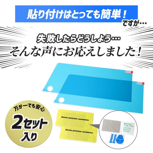 | 簡単に貼り付けできます。貼り付け手順の説明や動画もございますので、そちらからもご確認をお願いいたします。万が一貼り付けに失敗した場合でも予備を1枚同梱しておりますので、ご安心ください。 |