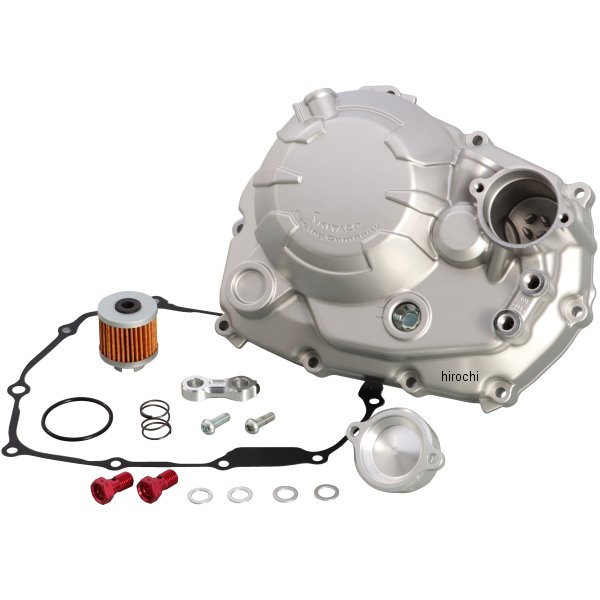 グロム系エンジン車用のアルミダイキャスト製のスポーティーかつ高品質なクラッチカバーです。オイルフィルターの内蔵やオイルクーラーの取り出し口を設け、レースからストリート車のカスタムまで幅広く対応。内部のクラッチ本体はノーマルクラッチに対応します。