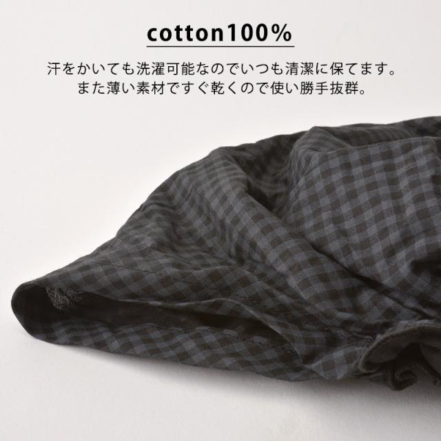 コットン素材なので蒸れにくく、洗濯してもすぐ乾くので、汗をかいても清潔に保てます。