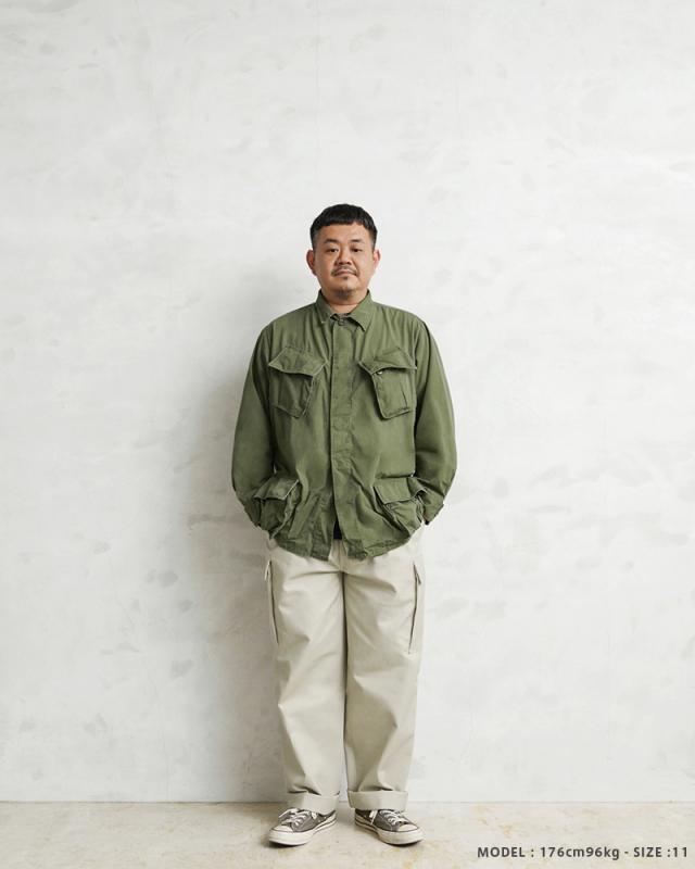 | 商品説明 | 実物 新品 デッドストック ドイツ軍 モールスキン カーゴパンツ オフホワイトのご紹介です。 ドイツ軍の名作と名高いモールスキンカーゴパンツのオフホワイトバージョンが入荷しました! カーゴパンツ特有の野暮ったさはなく、きれいなシルエットが魅力で、テーパードが効いたシルエットは普段着のコーディネートに取り入れやすい洗練されたシンプルなデザインです。アイボリーのようなグレーがかったオフホワイトが印象的なカラーで、1990年代まで使用されていたカーゴパンツです。 ヴィンテージのフレンチワークアイテムなどによく使われているモールスキン素材ですが、モールスキンは、太い綿糸を生地の片面だけではなく、両面に起毛させながら織り上げています。mole(モグラ)skin(肌)という意味でもともとはモグラの毛皮を指していました。 丈夫な綿素材と言えば、キャンバスやデニムがよく使用されていますが、実は最も丈夫なのが、このモールスキンと言われています。織りの密度が高く、耐久性にすぐれたやや厚手のコットン生地は使い込むほどに風合いが増し、長く着用していただける堅牢性の高い素材です。 こちらはミリタリートラウザーの中でもとりわけ希少な存在とされているカーゴパンツで、フロントはボタンフライ、バックポケットは1つ、サイドカーゴポケットはボタンタイプ、裾にはドローコードが入っています。内側にはサスペンダーボタンが付属しています。 股下にはベンチレーションの役割を果たすホールも備わっています。ミリタリーならではのディテールでありながらもモールスキン素材が他とは違う独特な存在感を放ち、スマートに着用していただける多くのブランドからもサンプリングされてきたパンツです。 アタリや経年変化の表情が素晴らしい素材なので、穿き込む度に柔らかくなる質感も楽しめます。今や完全に市場から姿を消しつつある希少なモールスキンカーゴパンツのさらにレアなオフホワイトです!お見逃しなく! | |||||||||||||||||||||||||||||||||||||||||||||||||||||||||||||||||||||||||||||||||||||||||||||||||