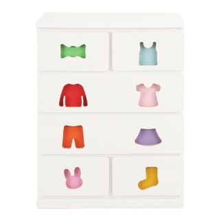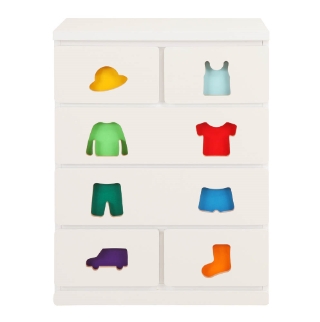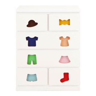 引き出しのマークで、パンツ、靴下、シャツ、ズボン…どこに収納しているのか視覚的に分かるチェストです。