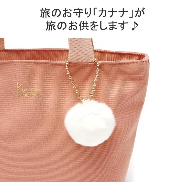 シンプルで女性らしいデザインの、コンパクトなミニバッグ。お弁当の収納や、荷物の少ない外出にぴったりな小ぶりサイズで、サブバッグやランチバッグとして活躍します。また本体には、旅先でハッピーが生まれますように。そして、元気で帰ってきますように。そんな願いをこめられた旅のお守り「カナナ」を付属しています。取り外しもできて、いつでもどこでも一緒に行動することができます。