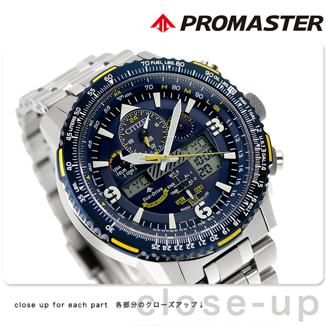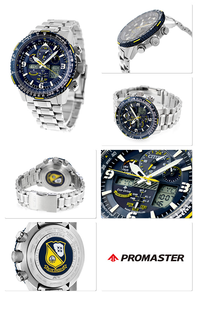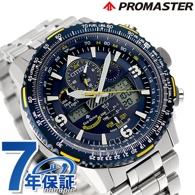 正規品 7年保証キャンペーン 送料無料 シチズン プロマスター クロノグラフ ソーラー電波 エコドライブ電波 エコ・ドライブ電波 メンズ 腕時計 JY8078-52L CITIZEN PROMASTER Blue Angels アナログ ネイビー ◆Go Further世界の果ての、そのまた先へ。世界を舞台に活躍する人のためのパイロットウオッチ。プロマスター「SKYシリーズ」。アメリカ海軍所属のアクロバット飛行隊「ブルーエンジェルス」モデル。コックピットの計器をイメージした文字板と機体をイメージさせる重厚なステンレススチールのケースライン。文字板には“ブルーエンジェルス”のネームが入った特別仕様。「JIS1種耐磁」「衝撃検知機能」「針自動補正機能」、3つの機能を一体化させた独自技術『パーフェックス』が、磁気や衝撃によって腕時計の針がズレるのを防ぎます。