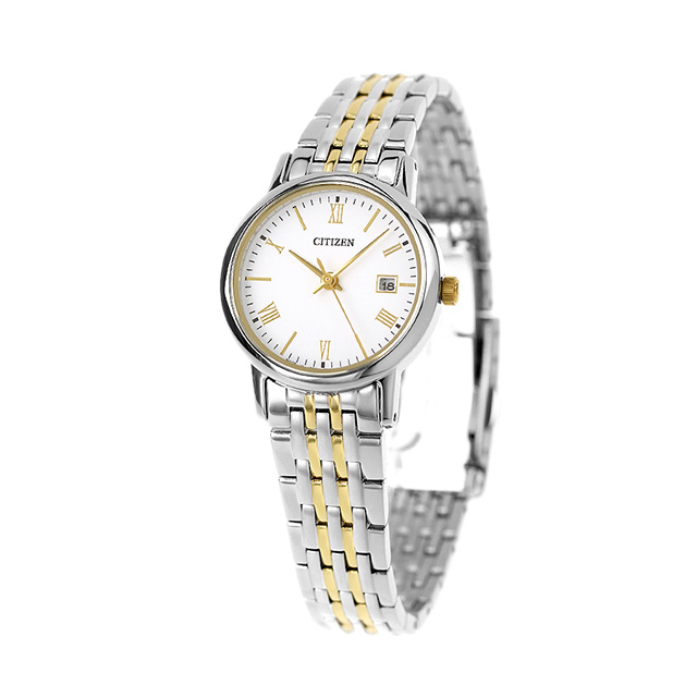 正規品 7年保証キャンペーン 送料無料 シチズン コレクション ソーラー 日本製 エコドライブ エコ・ドライブ レディース 腕時計 EW1584-59C CITIZEN COLLECTION アナログ ホワイト ゴールド 白 ◆シチズンより、機能美を追求したエントリーモデル「My First CITIZEN Line」の登場です。 定期的な電池交換がいらないエコ・ドライブを搭載。ローマ数字と棒字のスタイリッシュなインデックスに、ゴールドが華やかな印象を与えるモデル。3時位置には日付表示を配置しています。