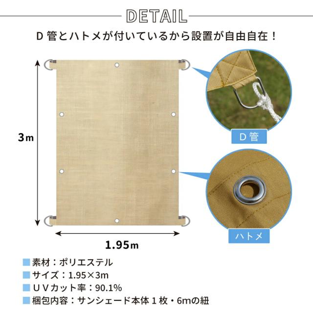 撥水サンシェード 1.95×3m 【送料無料】 日よけ シェード おしゃれ 大型 スクリーン オーニング バルコニー ベランダ フェンス 目隠し 目かくし 紫外線 UV対策 省エネ 節約 節電 タープ 日除け 遮光率 UVカット よしず 洋風 タープ 日除け