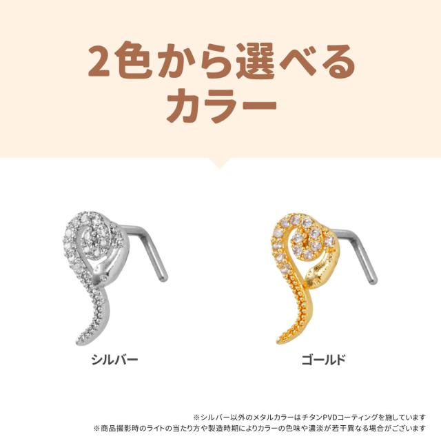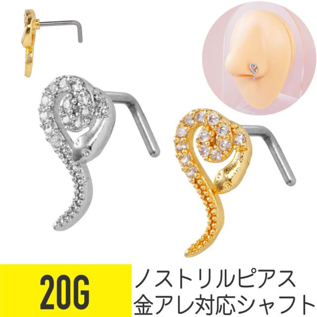 ヘビ パヴェ ノストリル 鼻ピアス 20G サージカルステンレス ジルコニア 軟骨ピアス ボディピアス 蛇 へび スネーク 爬虫類 cz L字 鼻ぴ