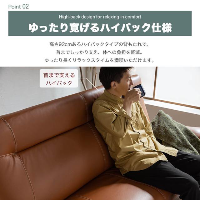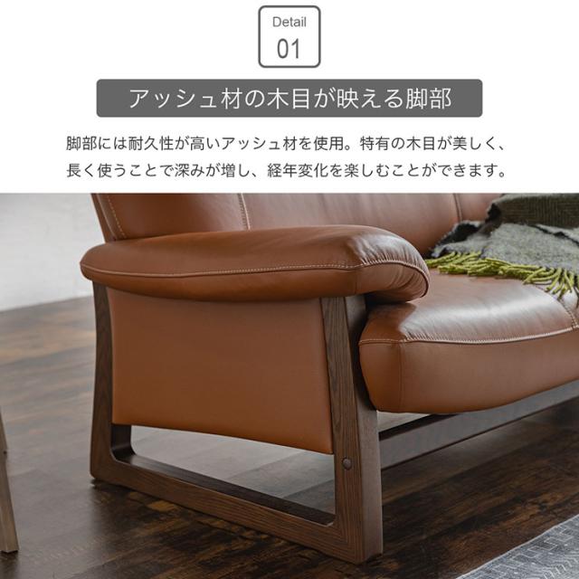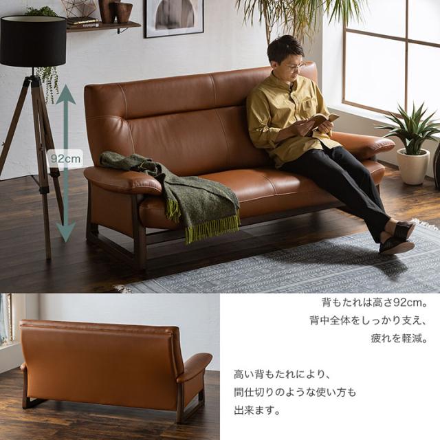 【開梱設置付き/日本製】本革ハイバックソファ パンサー 3人掛け ソファ 幅192cm 3人掛けソファ 三人掛けソファ 肘掛け付 合皮 合成皮革 アッシュ材 ブラウン シンプル おしゃれ