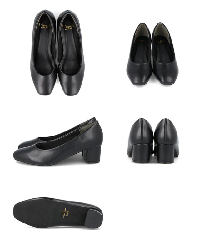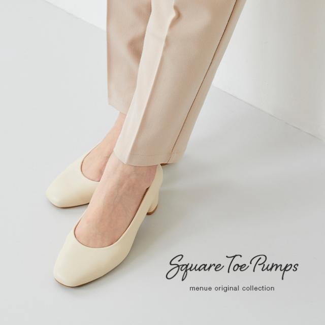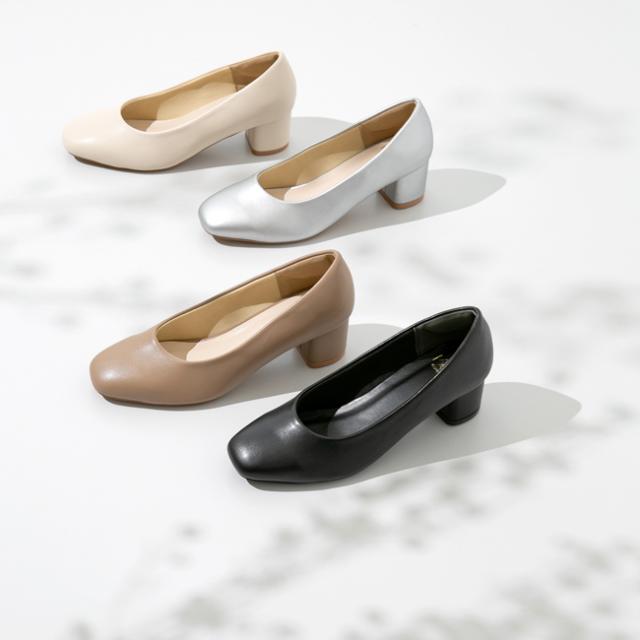 ぴったり履けるベーシックデザイン 幅狭スクエアトゥパンプス