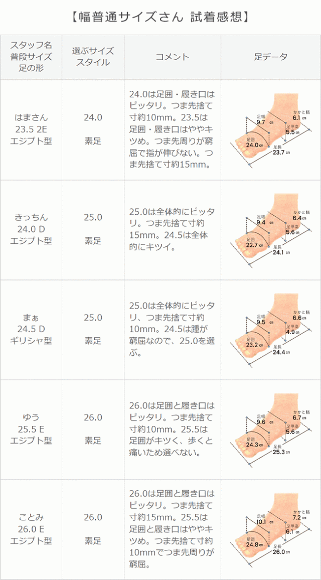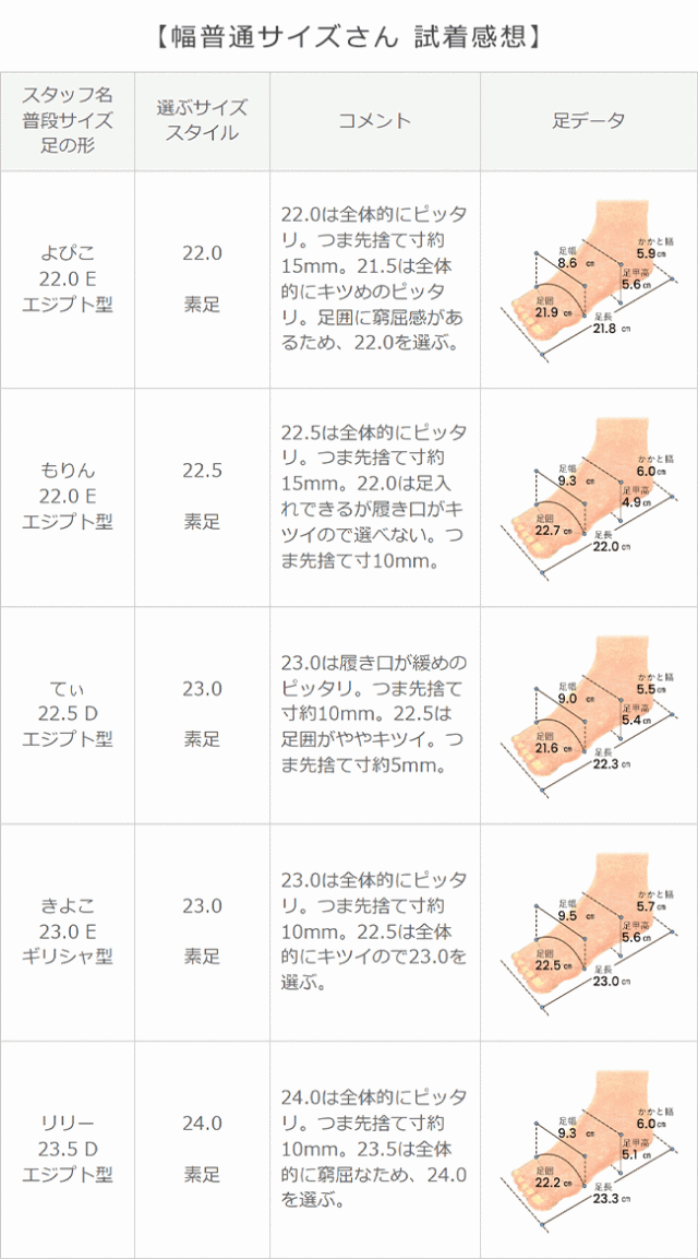 ※足の形には個人差があります。スタッフ試着感想は参考程度にお考え下さい。