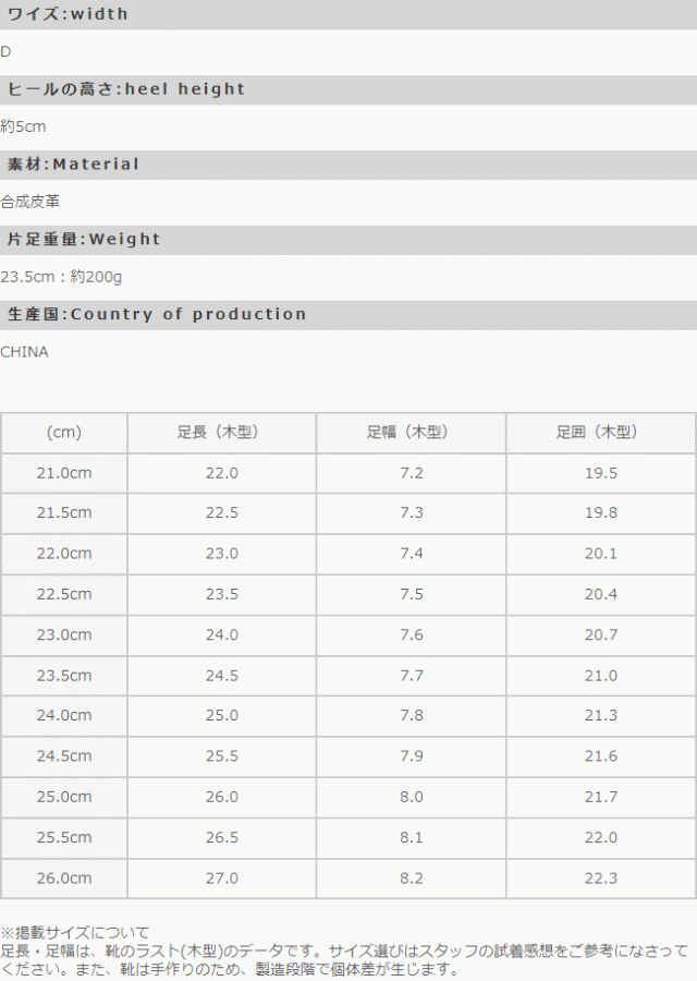足長(木型):22.5cm/足幅(木型):7.3cm