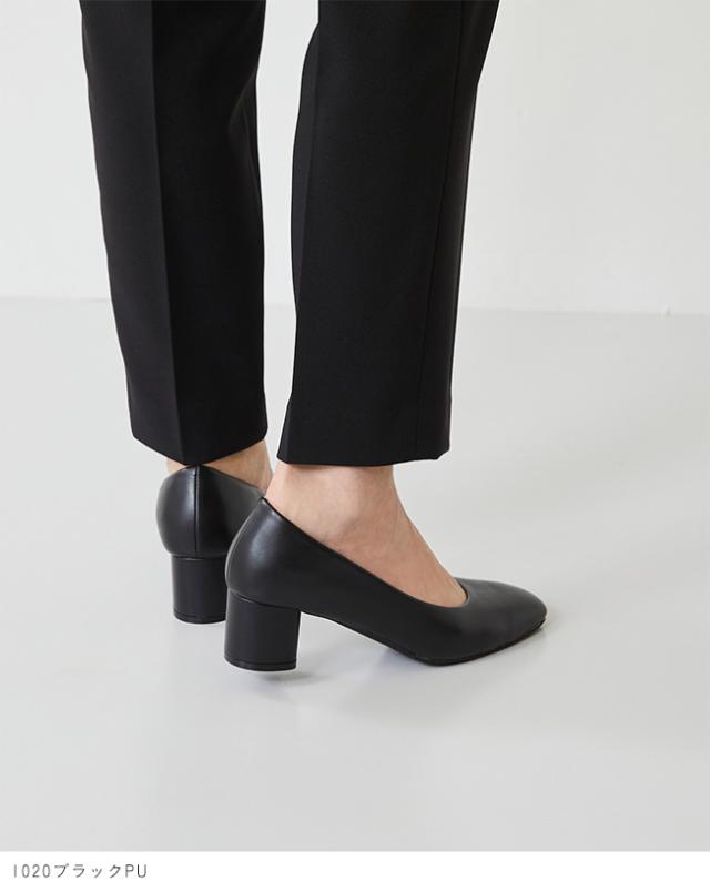 パンプス 痛くない 歩きやすい 幅狭 靴 レディース チャンキー 太ヒール スクエアトゥ フォーマル きれいめ 入学 入園式 送料無料