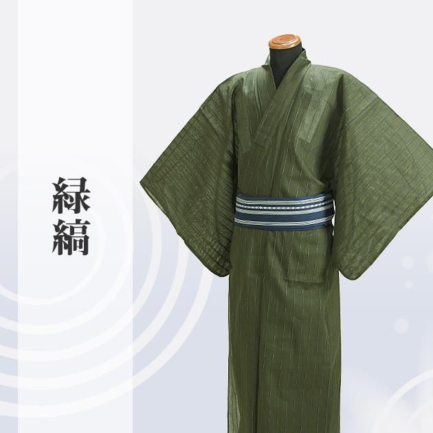 浴衣 男性 レンタル NT-my137 浴衣3点セット☆浴衣・帯・下駄☆緑色/縞 送料無料