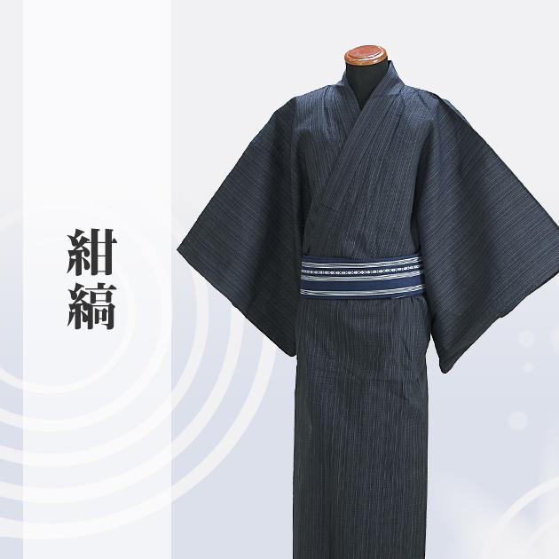 浴衣 男性 レンタル NT-my139 浴衣3点セット☆浴衣・帯・下駄☆紺色/縞 送料無料