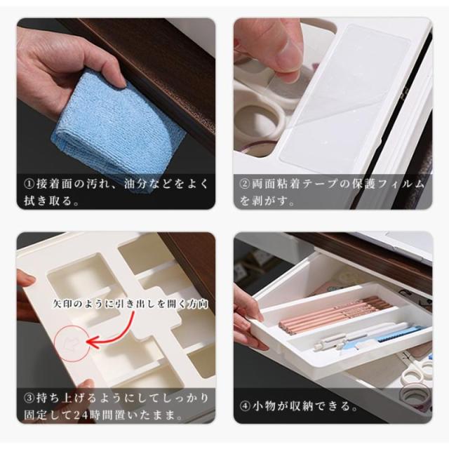 収納ボックス 収納ケース 引き出し 取り付け式 スライド デスク下 机下 天板下 トレイ 小物入れ 収納 便利グッズ 引き出し 在宅勤務 両面