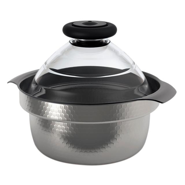 直火でもIHでも使える、槌目が美しいシンプルなデザインのご飯釜です。スタイリッシュな見た目なのでキッチンに出しておいてもオシャレですし、そのまま食卓に並べても楽しめます。