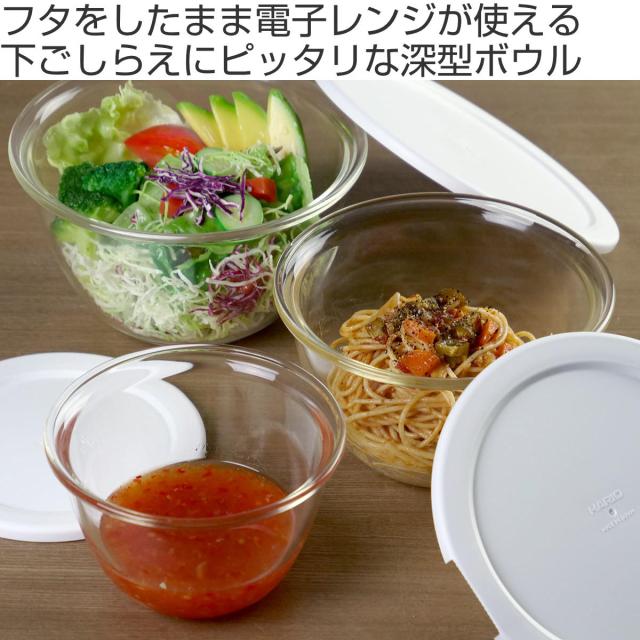 ハリオ 耐熱ガラス製ボウル 3個セット 電子レンジ対応 食洗機対応 日本製 ( HARIO 耐熱ボウル ガラスボウル 耐熱 ガラス オーブン対応 蓋付き 深型 調理ボウル 耐熱容器 ボウル ボール サラダボウル 保存容器 下ごしらえ )
