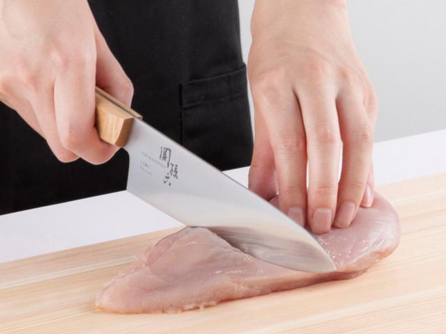 「鋭い先端」と「長い刃渡り」で、肉のカットはもちろん、魚・野菜など大きな食材のカットや硬い食材のカットも得意な包丁です。