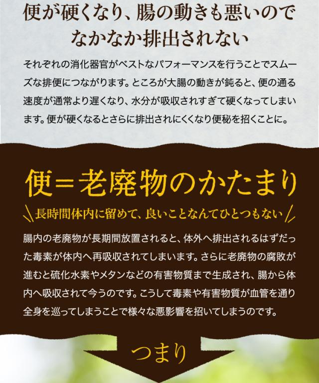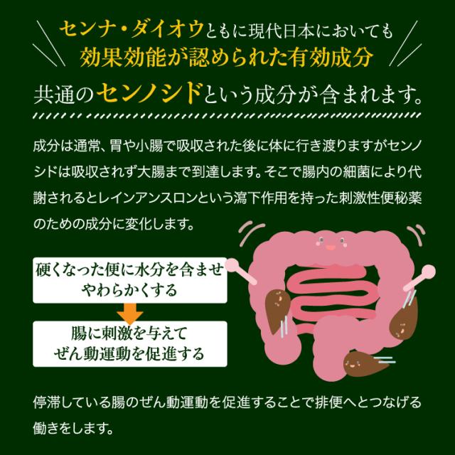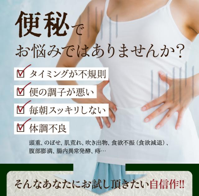・便秘に伴う次の症状の緩和:頭重、のぼせ、肌荒れ、吹き出物、食欲不振、腹部膨満、腸内異常醗酵、痔