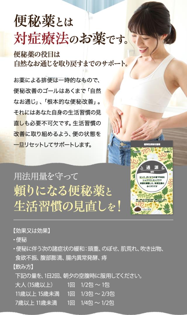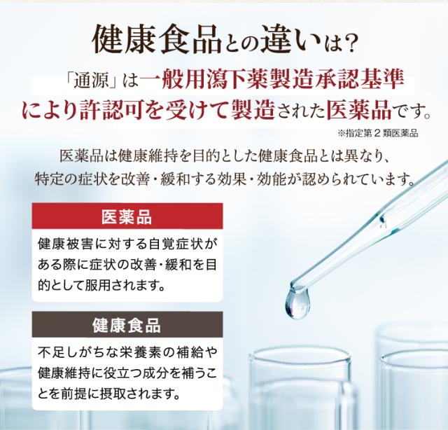 「通源」は、一般用瀉下薬製造承認基準により許認可を受けて製造された医薬品です。