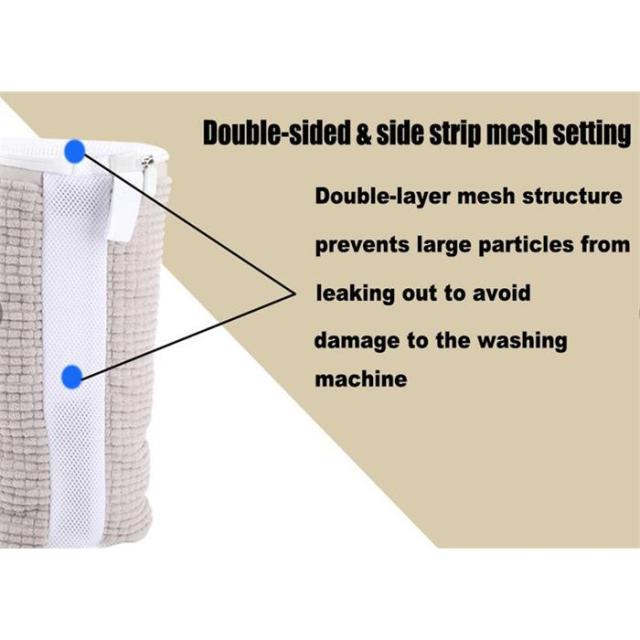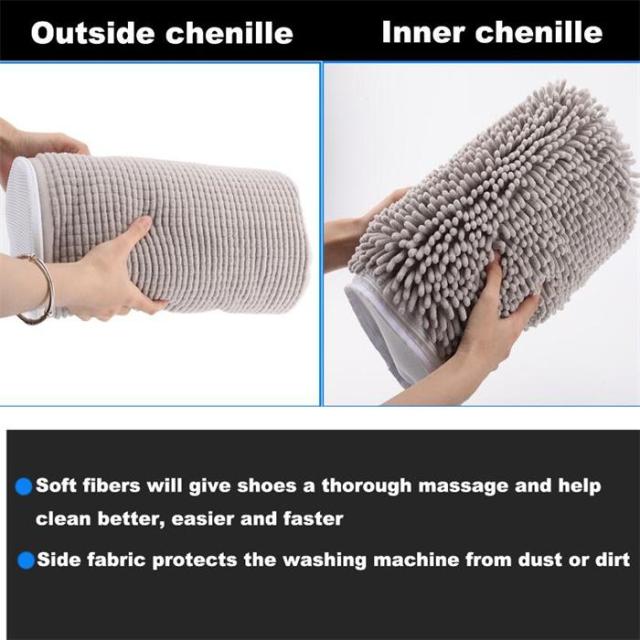 【型崩れ防止】靴用洗濯ネットの内部は、10,000本以上の毛羽繊維を使用し、ハンドブラシを模した毛羽柱を形成しており、通気性が高く、衛生的で、安全で清潔です。