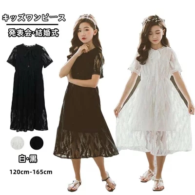 商品名:キッズ ワンピース 子供 ワンピース 子どもドレス フォーマルワンピース レースワンピース ピアノ 発表会 半袖 ドレス 夏着 子供服 結婚式 七五三 ワンピース シンプル 可愛い ドレス ファッション お姫様 白 黒 ガールズ 120 130 140 150 160 165 ギフト 送料無料