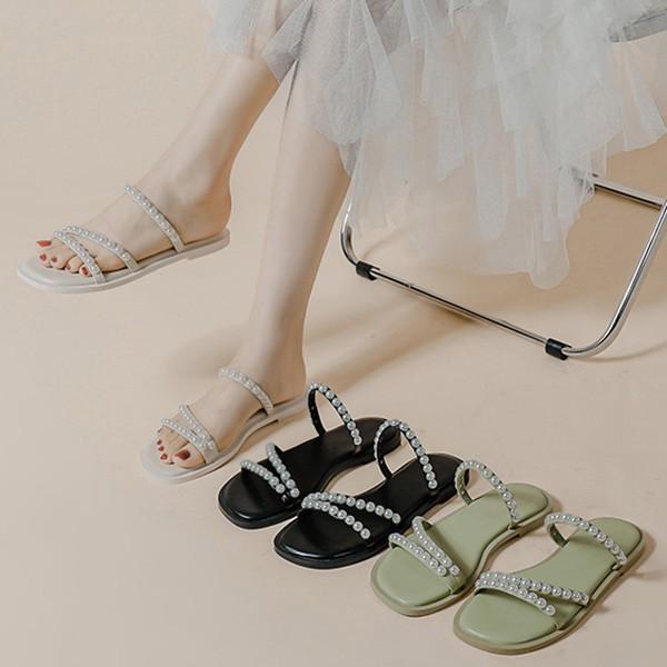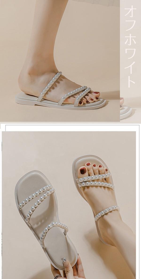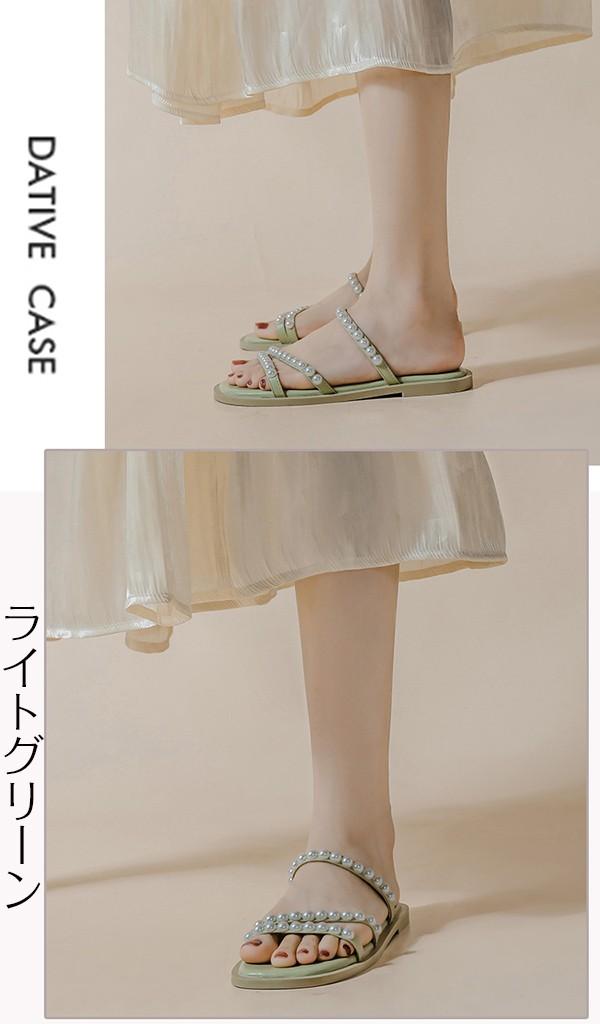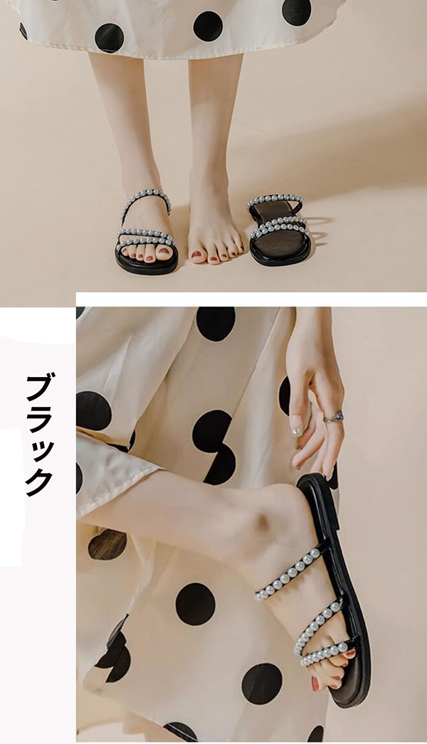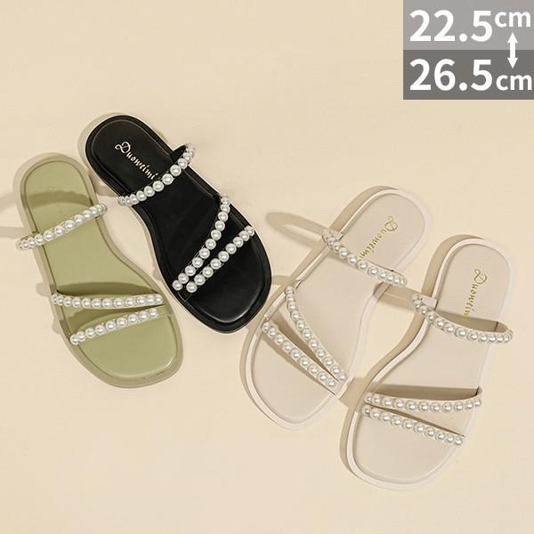 サンダル フラットシューズ レディース パール ローヒール 26.0 26.5 大きいサイズ ぺたんこ 歩きやすい 疲れにくい おしゃれ かわいい きれいめ 走れる 旅行 大きいサイズ 履きやすい 柔らかい やわらかい 黒 緑 cs058s1s1zr