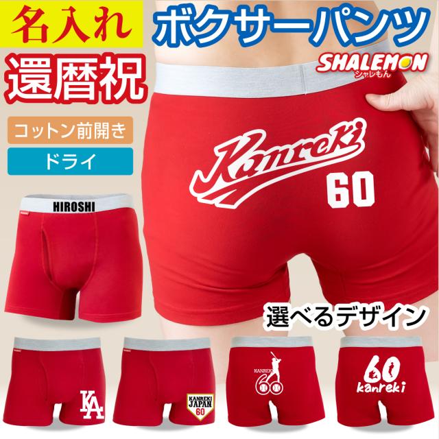 還暦祝い 名入れ 男性 父 プレゼント ( ボクサーパンツ 選べるデザイン ) 60歳 赤 パンツ お父さん 還暦 コットン 綿 ドライ 速乾 実用的 贈り物 ちゃんちゃんこ の代わり 男性下着 お祝い ギフト 名前入り 野球 釣り ユニフォーム風 スポーツ