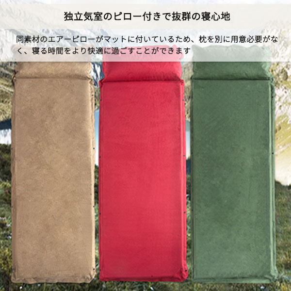 ポイント超超祭 エアーマット エアベッド 枕付き シングル キャンプマット 3cm厚さ キャンプ用品 車中泊 フロッキー エアマット 空気ベッド アウトドア 防災用品
