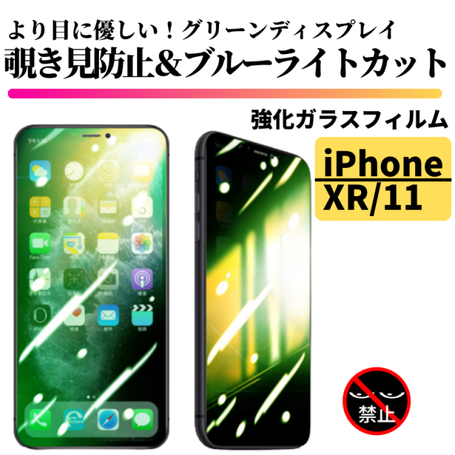 iPhone XR iPhone 11 覗き見防止 ブルーライトカット グリーンガラス 強化ガラス フィルム ガラスフィルム 保護フィルム 指紋防止 硬度9H 飛散防止 気泡防止 全面保護 フルカバー 光沢 耐衝撃 ガラス アイフォン のぞき見 高透過 グリーン iphone