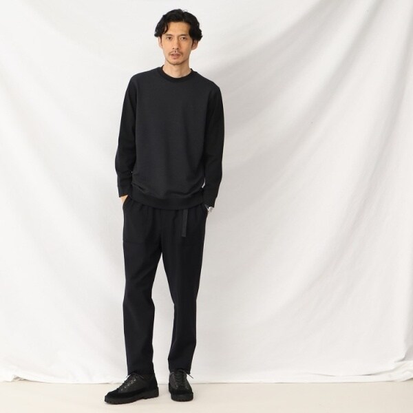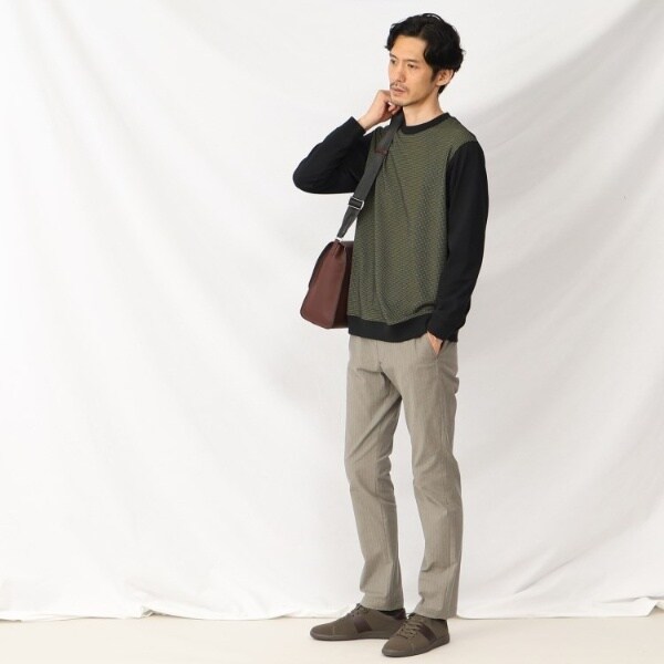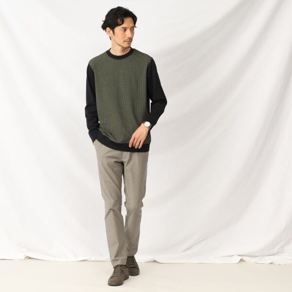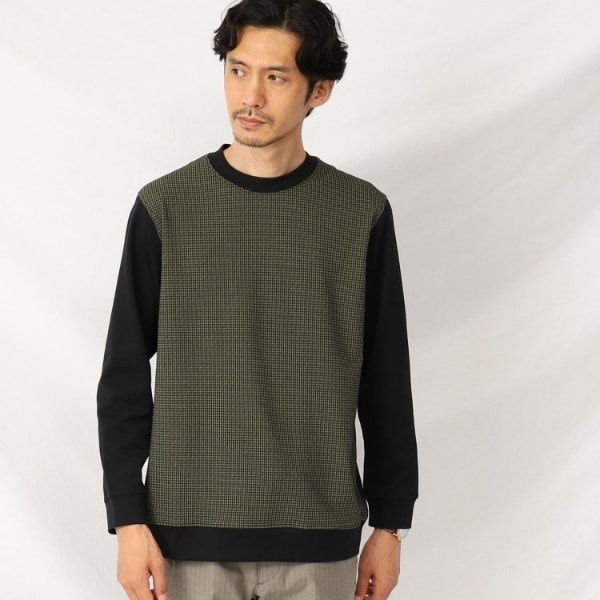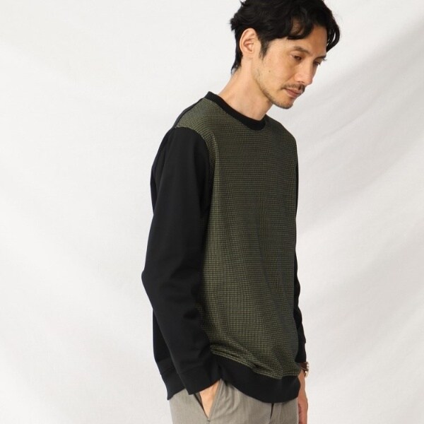 まるで織物のようなジャージファブリック 上品しっかり見えのウールブレンド コンビプルオーバー