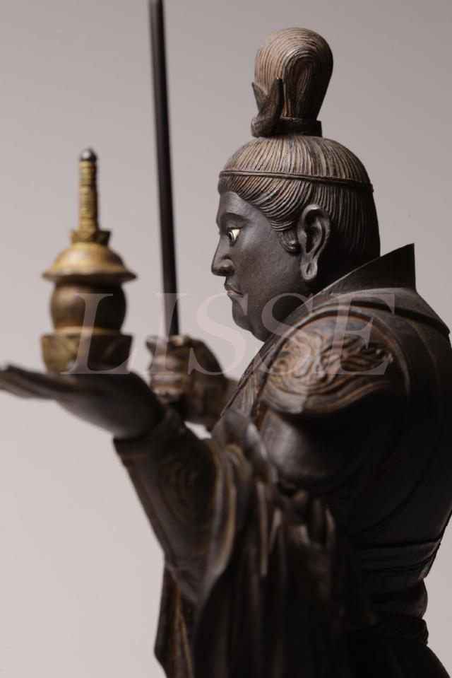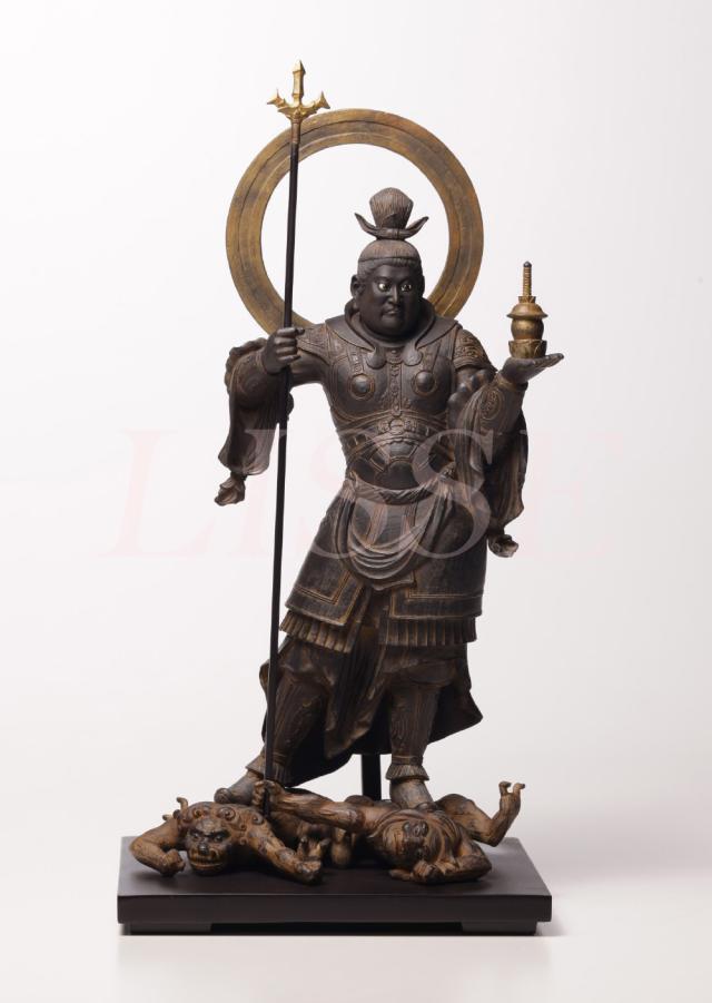 モデルは2013年に国宝指定された「毘沙門天立像」。平安から鎌倉へと時代が変わろうとしている文治2(1186)年に、名仏師 運慶の手によって造像されたものです。躍動感あふれる姿は東国武士のたくましさを思わせ、運慶の新時代への意欲と確かな力量がうかがえる名作です。